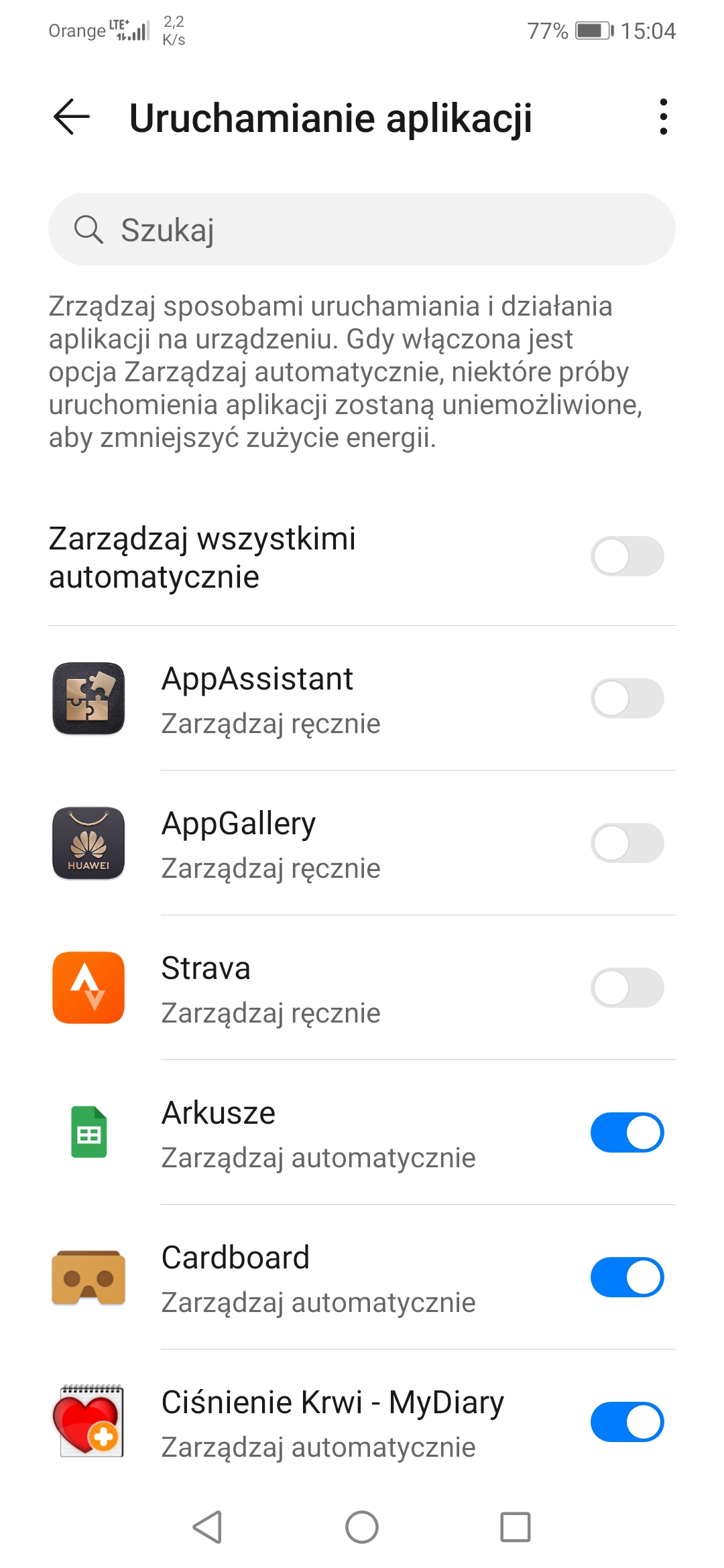 W telefonach Huawei opcja zarządzania energią znajduje się w „Ustawienia/ Aplikacje/ Uruchamianie aplikacji” Odnajduje tam nasza aplikację którą ma nie oszczędzać baterii i po prawej stronie wyłączamy suwaczkiem automatyczne zarządzanie. Przeczytajcie artykuł na ten temat, pomińcie kilka paragrafów o opasach i dojdźcie do właściwej informacji pod sam koniec. Zapraszamy tutaj: https://webinsider.pl/android-optymalizacja-baterii-wylaczenie-dla-wybranych-aplikacji/